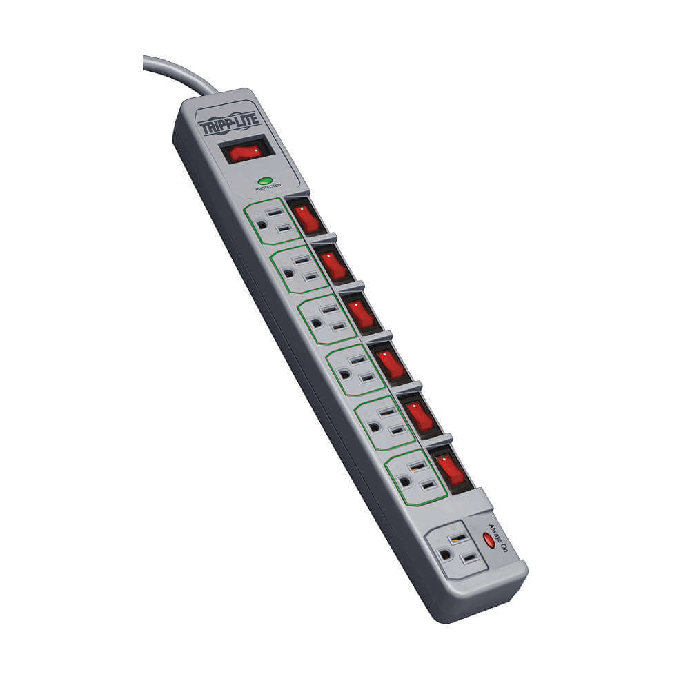 TRIPP LITE TLP76MSG Surge Suppressor 15a 7 Outlet 6 Feet Gray