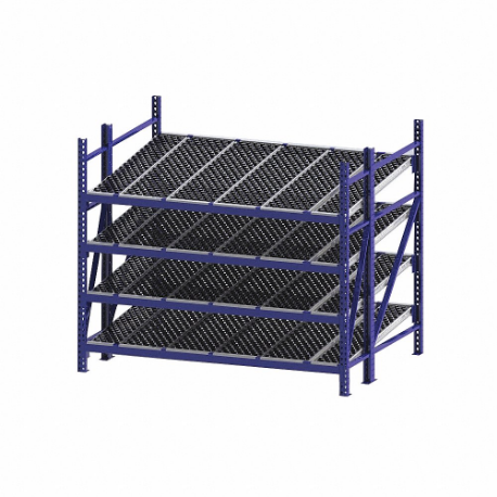 UNEX FLOW CELL RR99S2W8X6-S Gravity Flow Rack, Starter, 96 Inch x 72 Inch, 84 Inch Overall Height, Tilted, 4 Shelves
