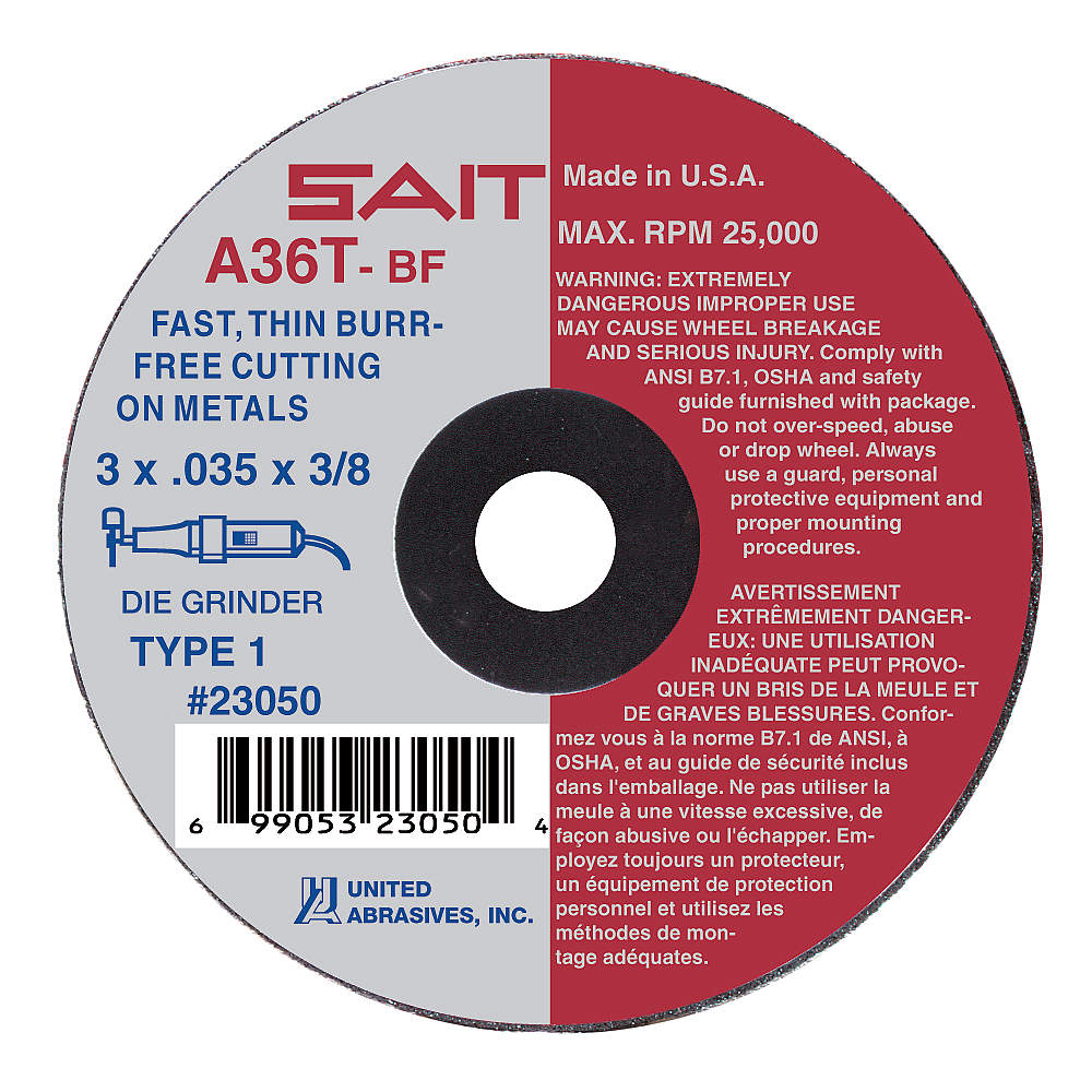 UNITED ABRASIVES-SAIT 23065 Abrasive Cut Wheel 4 Inch Diameter 0.625 Inch T 3/8 Inch Arbor Hole
