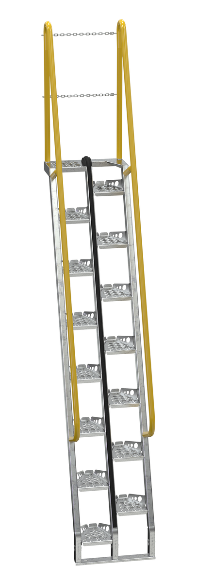 VESTIL ATS-9-68-HDG Galvanized Alternate Tread Stair, 68 Deg, 54-1/8 x 23-1/2 x 149-5/8 Inch, 350 lb Capacity, Silver
