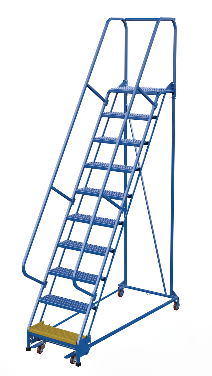 VESTIL LAD-PW-26-10-G Steel Standard Slope Ladder, 58 Deg, 10 Grip Strut, 23-9/16 Inch Step Width, 350 lb Capacity, Blue