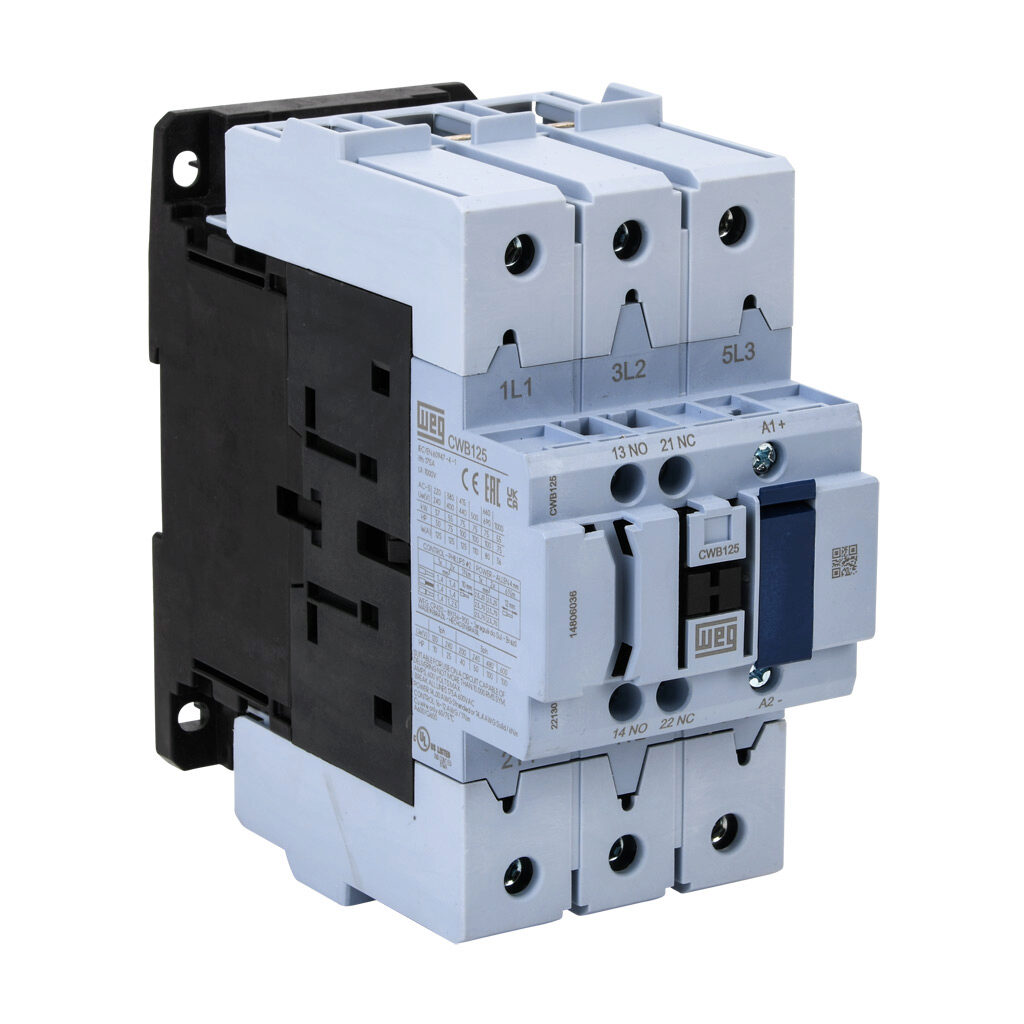 WEG CWB125-11-30E65 14806036 Contactor, 125 A Rated, 3 NO Main Contact, 1 NO, 1 NC Aux Contact, 110-255V 50/60Hz-DC