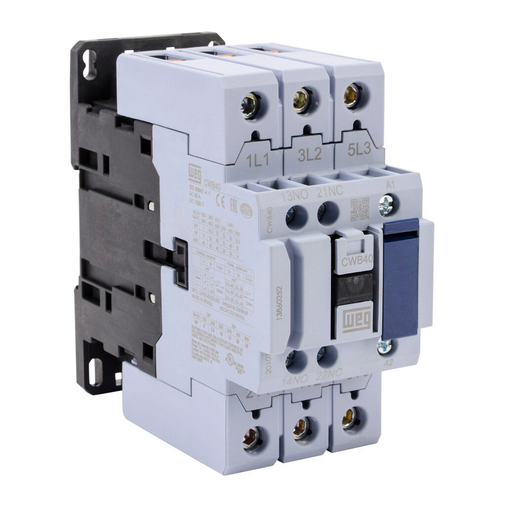 WEG CWB40-11-30V24 13860252 Contactor, 40 A Rated, 3 NO Main Contact, 1 NO, 1 NC Aux Contact, 180-208V 50Hz/208-240V 60Hz