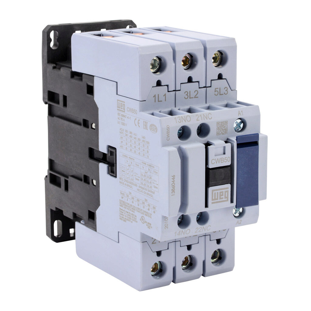 WEG CWB50-11-30D39 13860446 Contactor, 50 A Rated, 3 NO Main Contact, 1 NO, 1 NC Aux Contact, 480V 50/60Hz