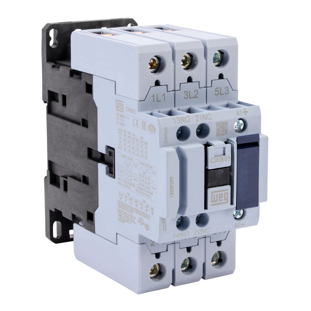 WEG CWB65-11-30C03 13539299 Contactor, 65 A Rated, 3 NO Main Contact, 1 NO, 1 NC Aux Contact, 24V DC