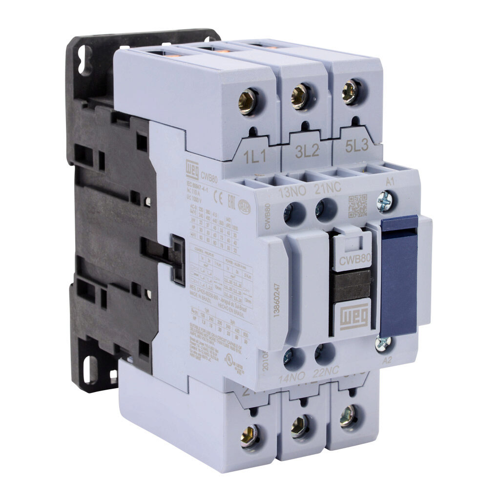 WEG CWB80-11-30D15 13860247 Contactor, 80 A Rated, 3 NO Main Contact, 1 NO, 1 NC Aux Contact, 120V 50/60Hz