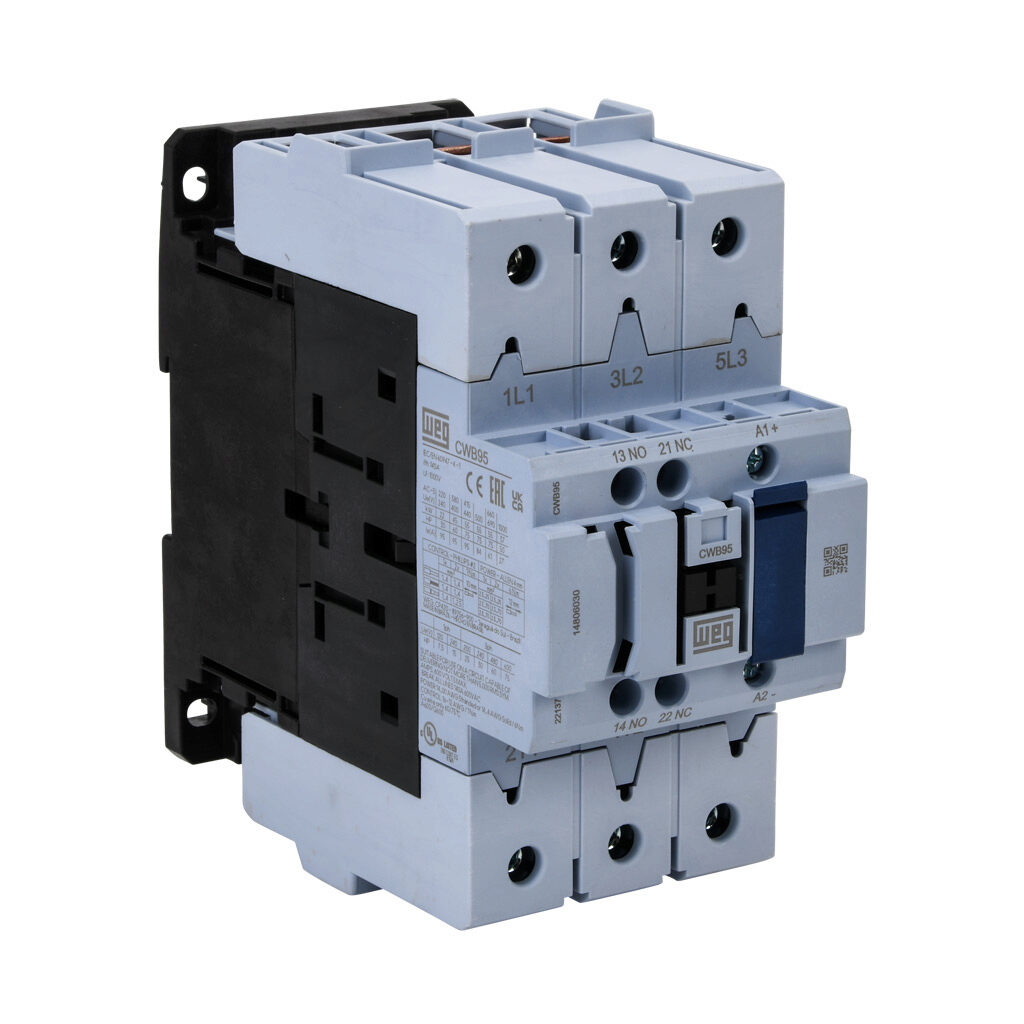 WEG CWB95-11-30E65 14806030 Contactor, 95 A Rated, 3 NO Main Contact, 1 NO, 1 NC Aux Contact, 110-255V 50/60Hz-DC