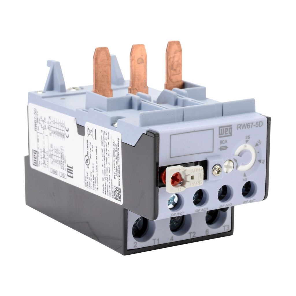 WEG RW67-5D3-U040 13368960 Thermal Overload Relay, 25-40A Adjustable, Bi-Metallic, Direct Mount Power Connection