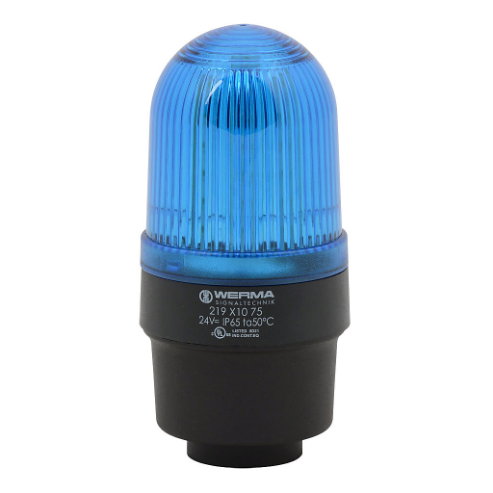 WERMA 21951075 Industrial Tall Signal Beacon, 58mm, Blue, Permanent, IP65, Tube Mount, 24 VAC/VDC
