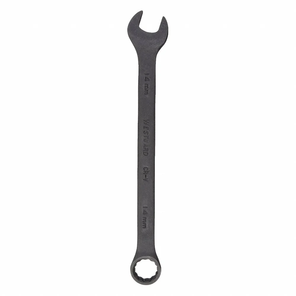 WESTWARD 1EYK4 Combination Wrench, Alloy Steel, Black Oxide, 14 mm Head Size, 7 3/4 Inch Overall Length, Offset