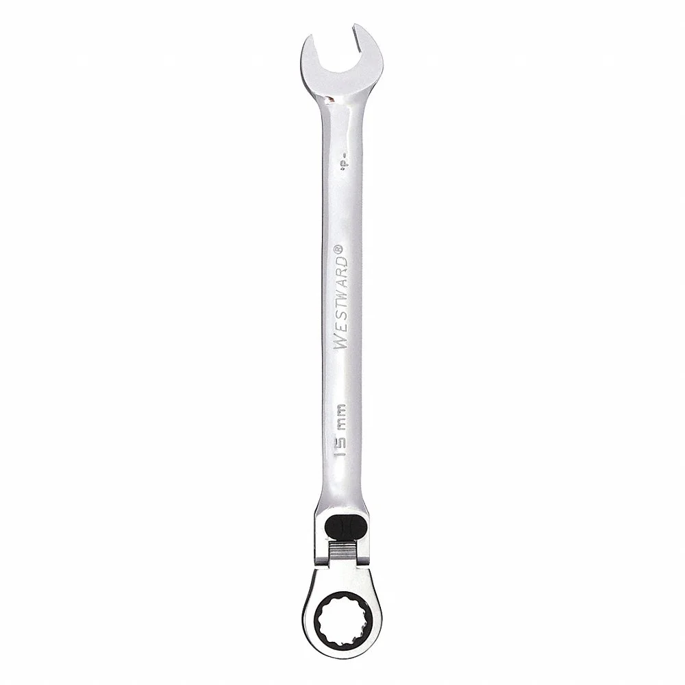 WESTWARD 1LCN7 Combination Wrench, Alloy Steel, Chrome, 15 mm Head Size, 9 Inch Overall Length, Flex