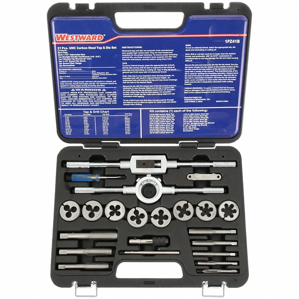WESTWARD 1PZ41 Tap And Die Set, 1/4-20 Inch Min. Tap Thread Size, 3/4-10 Inch Max. Tap Thread Size