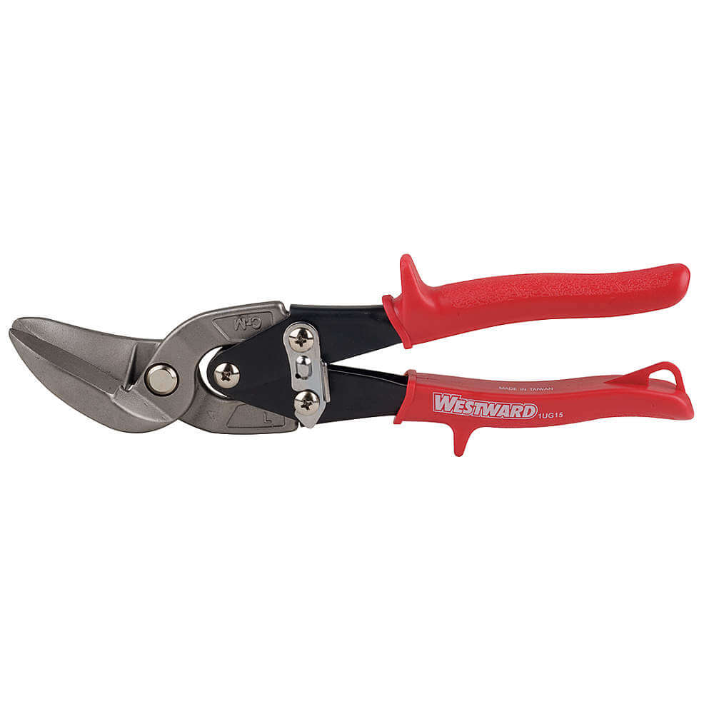 WESTWARD 1UG15 Offset Aviation Snip, Left, 9 3/4 Inch OAL, 1 1/4 Inch Cutting Length, Steel, Plastic
