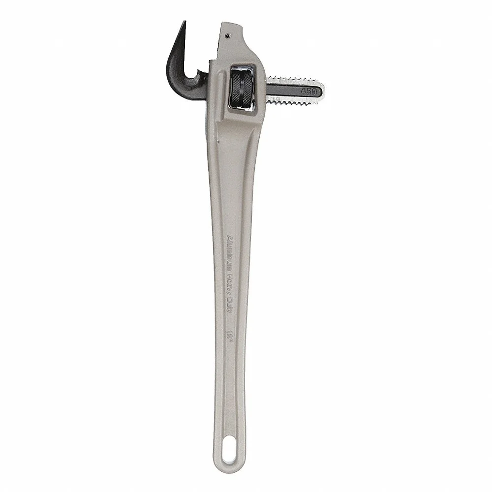 WESTWARD 1XJZ8 Offset Pipe Wrench, Aluminium, 2 1/2 Inch Jaw Capacity, Serrated, 18 Inch Overall Length, I-Beam