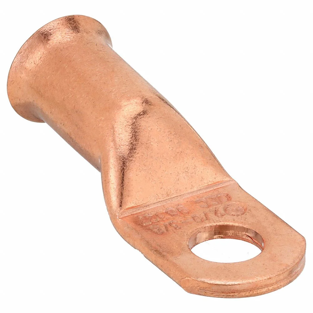 WESTWARD 23YZ04 Lug, Crimpable Side Terminal, Crimp/Solder, Copper, 2/0 Gauge, 3/8 Inch Stud Size, Straight