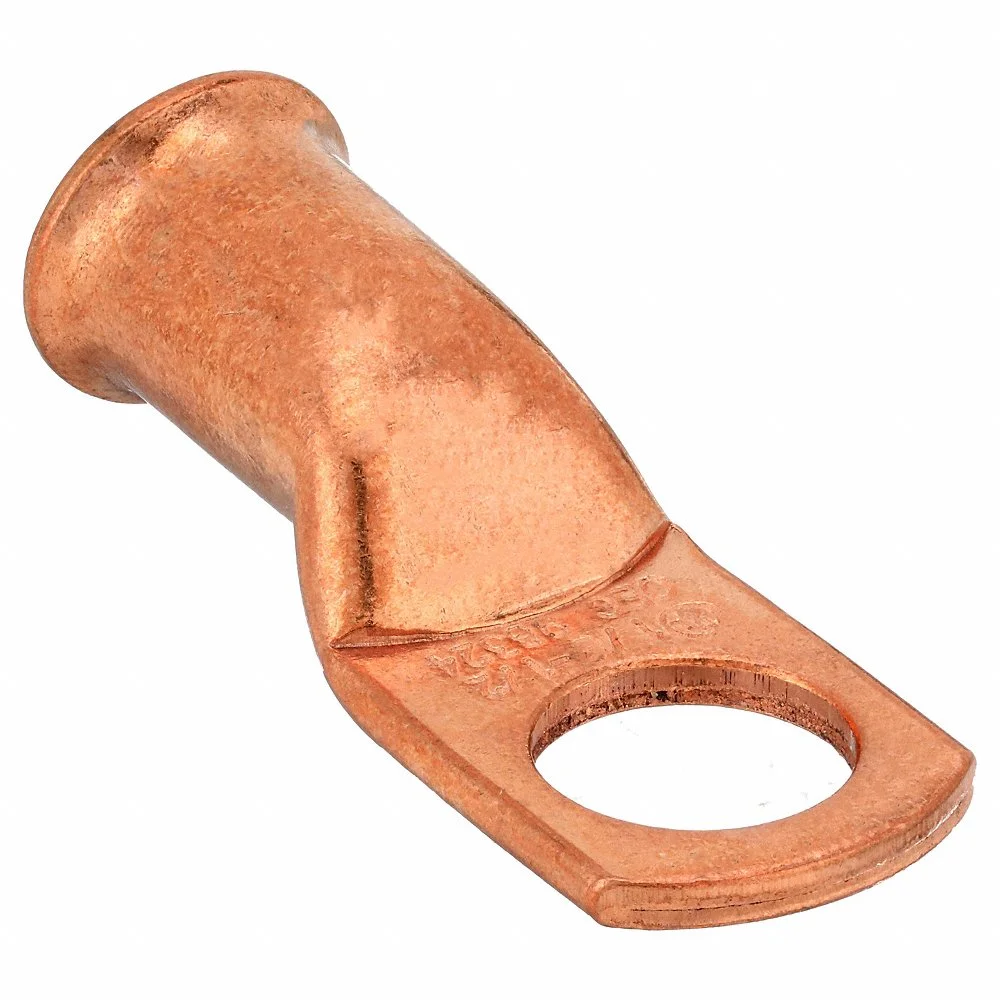 WESTWARD 23YZ29 Lug, Crimpable Side Terminal, Crimp/Solder, Copper, 1/0 Gauge, 1/2 Inch Stud Size, Straight