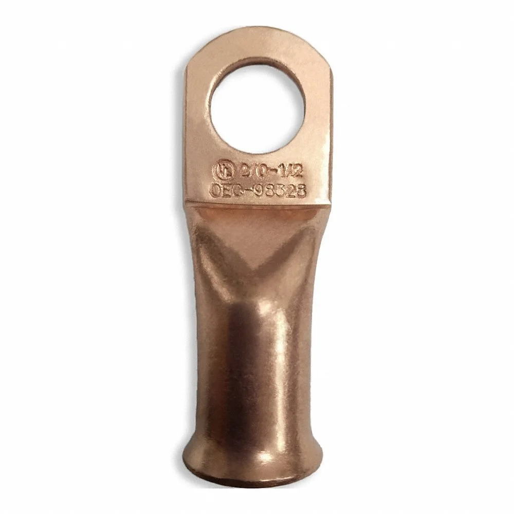 WESTWARD 23YZ31 Lug, Crimpable Side Terminal, Crimp/Solder, Copper, 2/0 Gauge, 1/2 Inch Stud Size, Straight