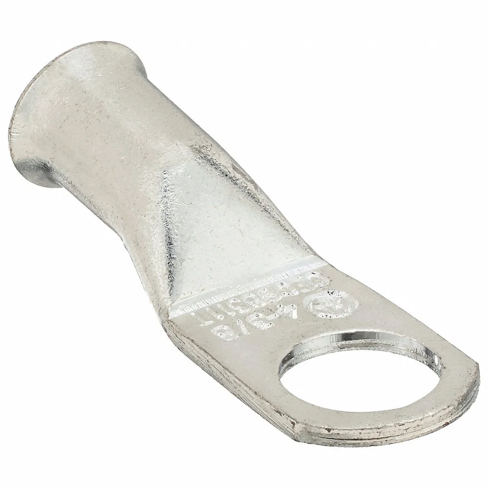 WESTWARD 23YZ69 Lug, Crimpable Side Terminal, Crimp/Solder, Copper/Tin, 4 Ga, 3/8 Inch Stud Size, Straight