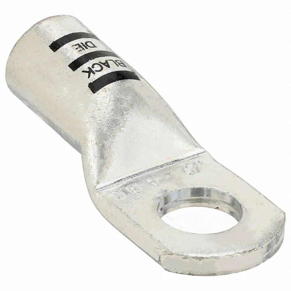 WESTWARD 23ZA13 Lug, Crimpable Side Terminal, Crimp/Solder, Copper/Tin, 1/0 Gauge, Black, 1/2 Inch Stud Size