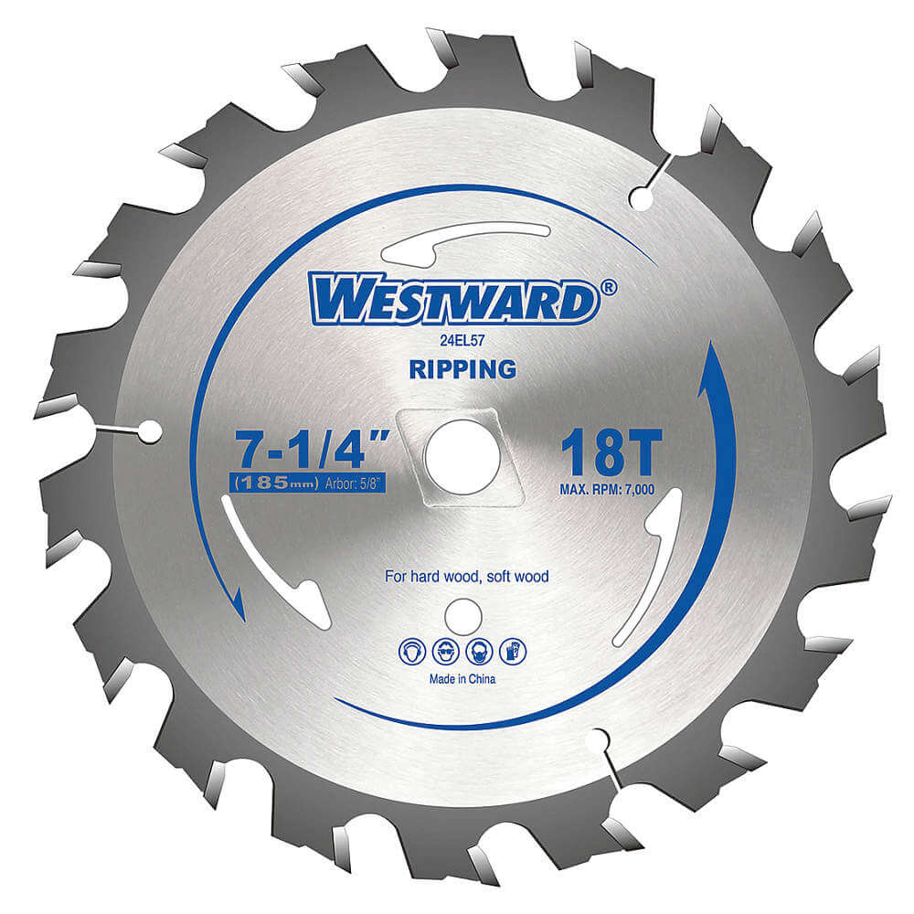 WESTWARD 24EL57 Circular Saw Blade, 7 1/4 Inch Blade Dia, 18 Teeth, 0.07 Inch Cut Wd, 5/8 Inch Arbor Size