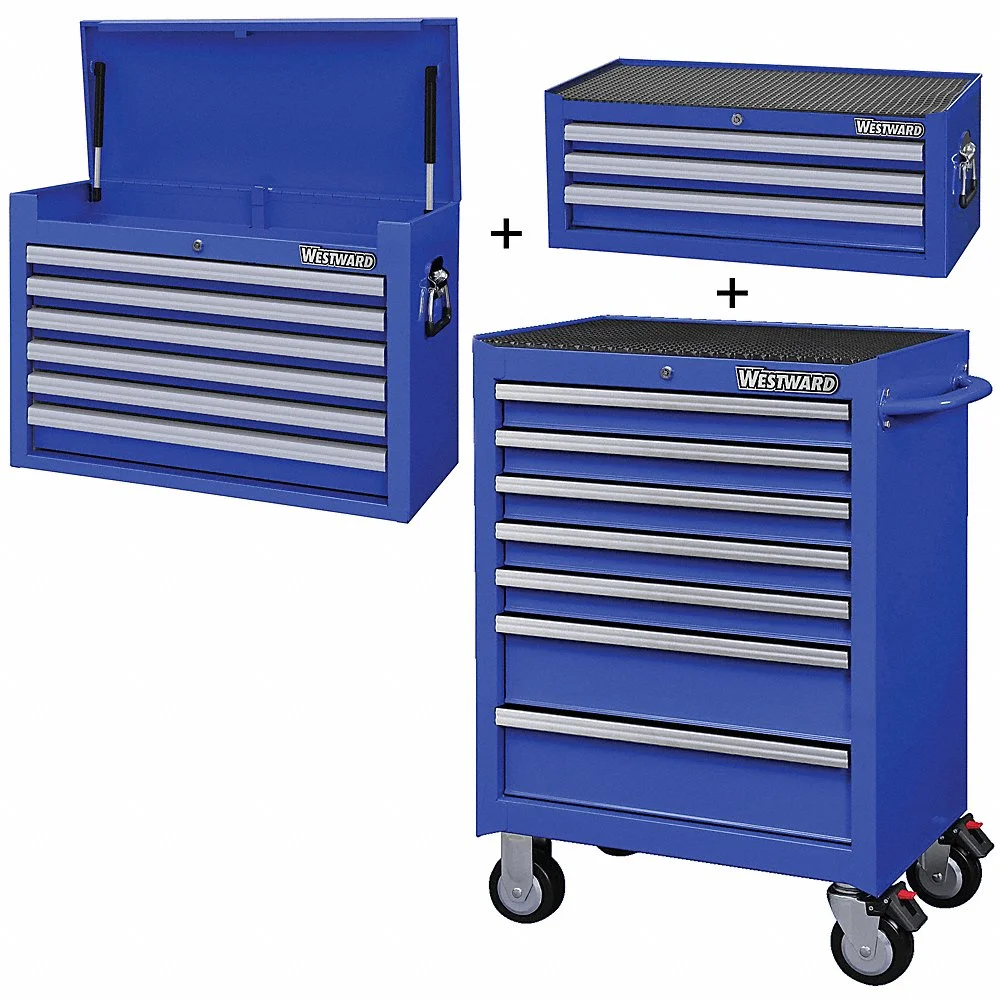 WESTWARD 361LN3 Rolling Cabinet Kit, Powder Coated Blue, 26 3/4 in W x 18 in D x 68 5/8 in H