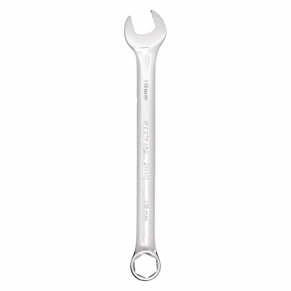 WESTWARD 36A301 Combination Wrench, Alloy Steel, Chrome, 19 mm Head Size, 9 3/4 Inch OAL, Offset, Ansi