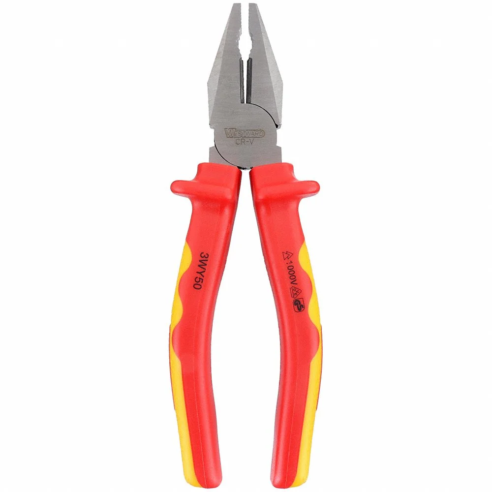 WESTWARD 3WY50 Lineman's Plier, Insulated, Curved, 8 Inch Overall Length, 1 5/8 Inch Jaw Length, 1 1/4 Inch Jaw Wd