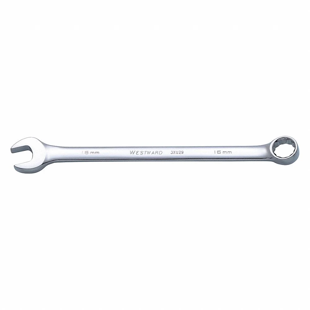 WESTWARD 3XU29 Combination Wrench, Alloy Steel, Chrome, 16 mm Head Size, 9 1/2 Inch Overall Length, Offset