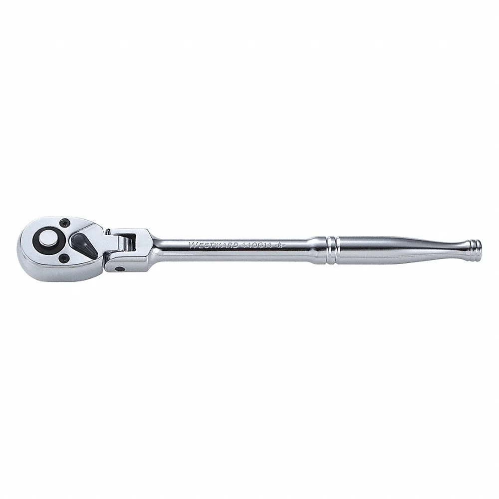 WESTWARD 440G14 Hand Ratchet, Pear, Reversible, 9 1/2 Inch Overall Length, Chrome, 5 Deg. Min Arc Swing