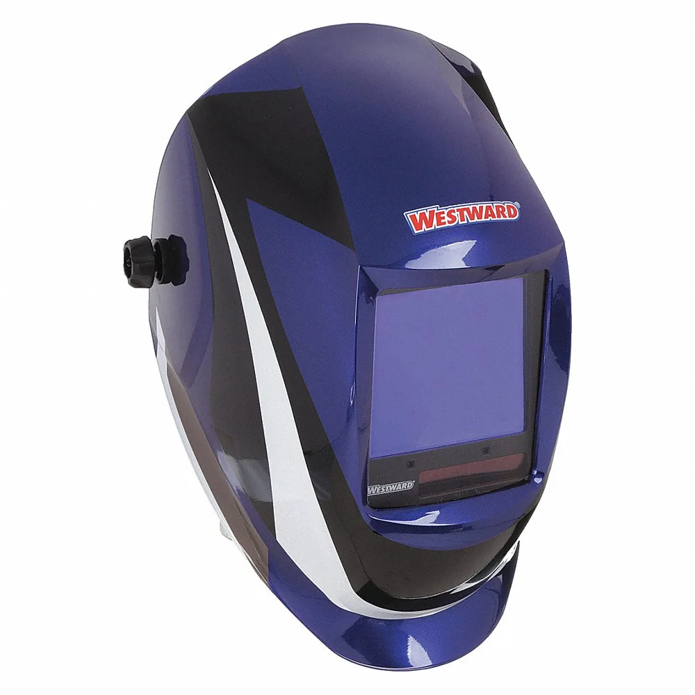 WESTWARD 44R226 Welding Helmet, Auto-Darkening, 4 Arc Sensors, Graphics, Black/Blue/White, W5-13, Analog