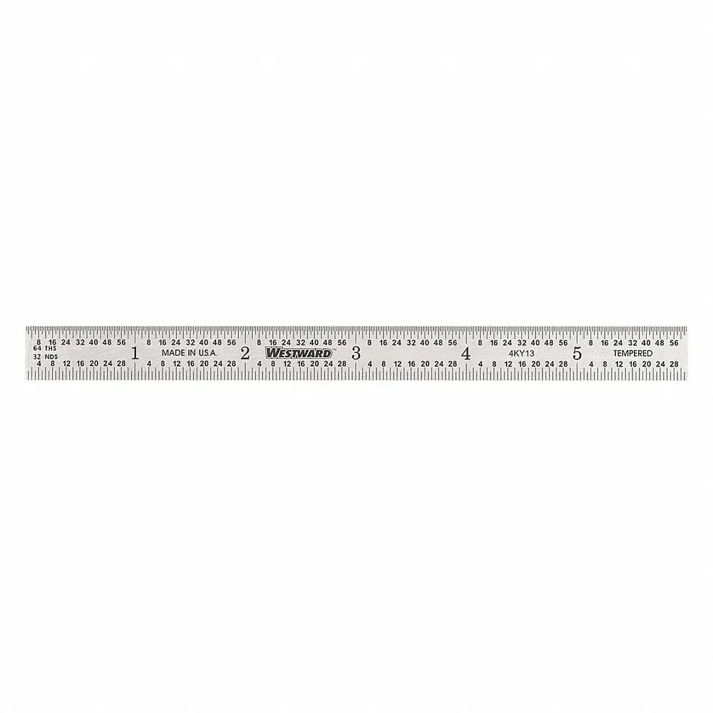 WESTWARD 4KY13 Flexible Rule, 6 Inch/152.4 mm, 0.02 Inch Thick, 0.5 mm/1/64 Inch Size, Chrome, Black, Flex