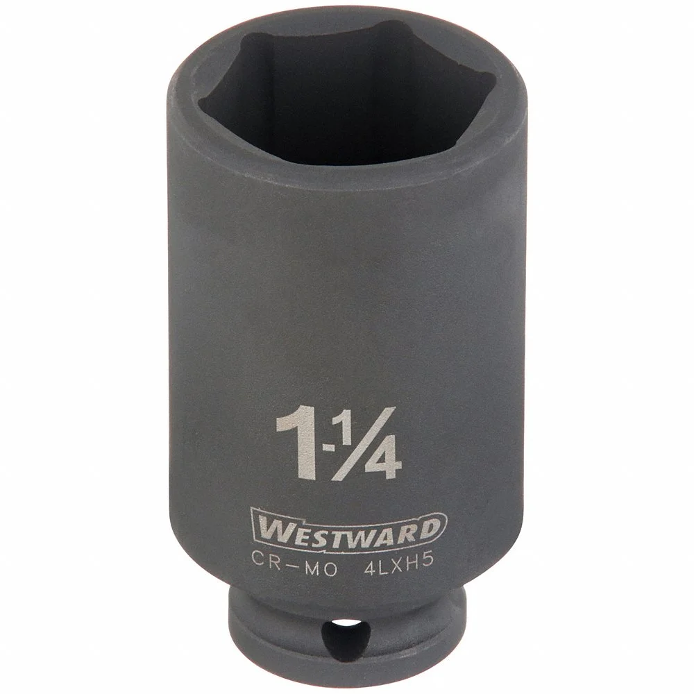 WESTWARD 4LXH5 Impact Socket, 1/2 Inch Drive Size, 1 1/4 Inch Socket Size, 6-Point, Deep, Black Oxide
