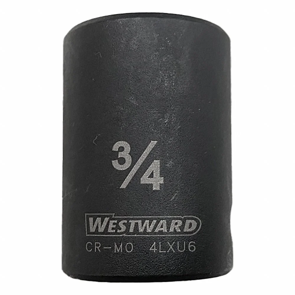 WESTWARD 4LXU6 Impact Socket, 1/2 Inch Drive Size, 3/4 Inch Socket Size, 6-Point, Std, Black Oxide