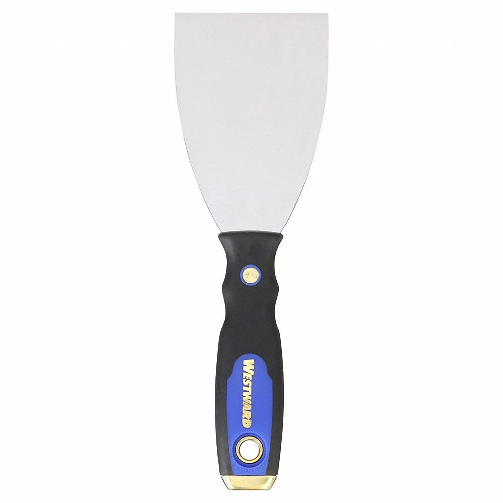 WESTWARD 4YP34 Putty Knife, Carbon Steel, Plastic/Rubber/Steel, Blade Shape Tapered, 9-1/4 Inch Overall Length