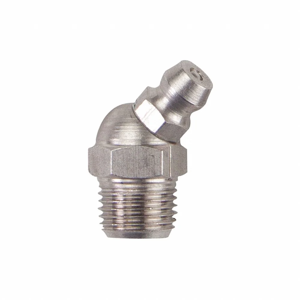 WESTWARD 52PA07 Grease Fitting, 1/8 27 Fitting Thread Size, 45 Deg Fitting Head Angle, PTF