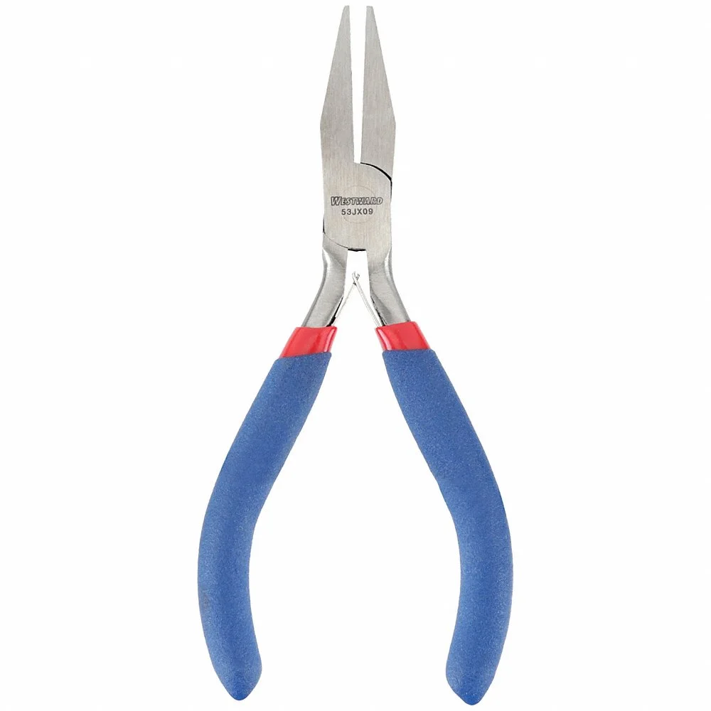 WESTWARD 53JX09 Flat Nose Plier, 1 1/4 Inch Max Jaw Opening, 5 Inch Overall Length, 1 Inch Jaw Length