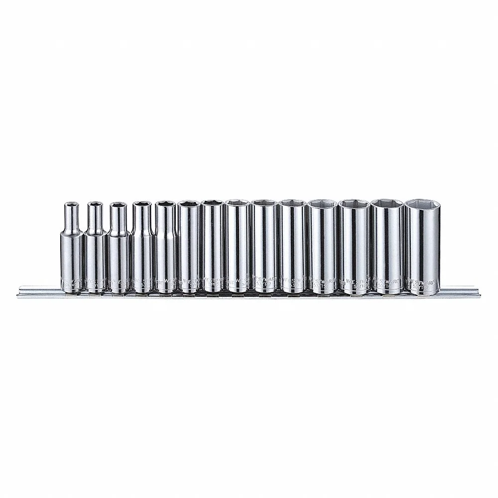 WESTWARD 53PN47 Socket Set, 3/8 Inch Drive Size, 14 Pieces, 6 mm To 19 mm Range