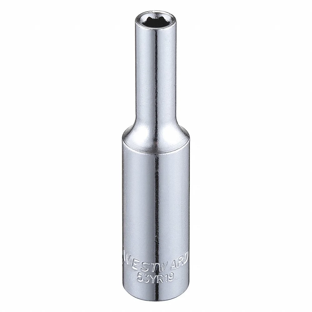 WESTWARD 53YR19 Socket, 1/4 Inch Drive Size, 5/32 Inch Socket Size, 6-Point, Deep, Chrome, Tether Ready