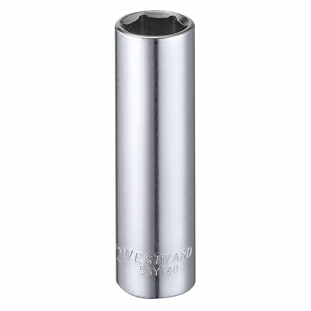 WESTWARD 53YT40 Socket, 3/8 Inch Drive Size, 1/2 Inch Size, 6-Point, Deep, Chrome