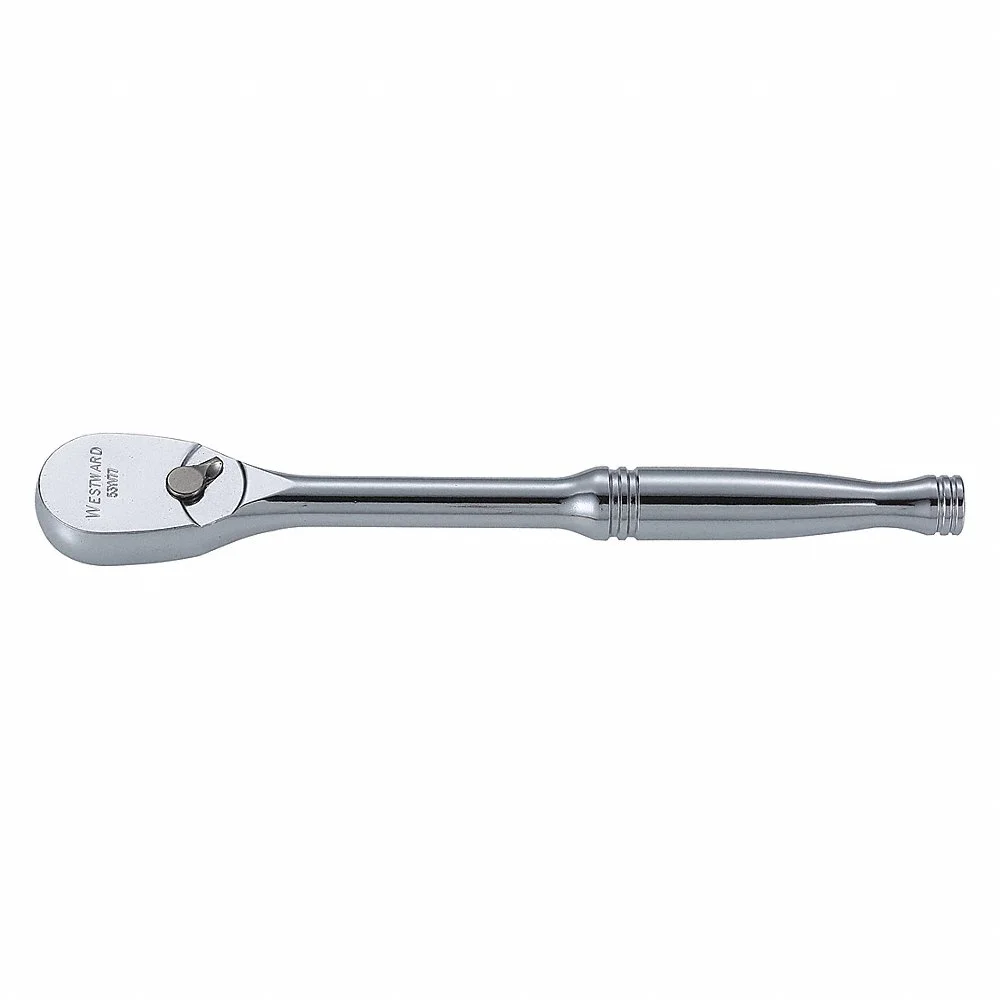 WESTWARD 53YV77 Hand Ratchet, Pear, Reversing, 8 1/4 Inch Overall Length, Chrome, 4.3 Deg Min Arc Swing