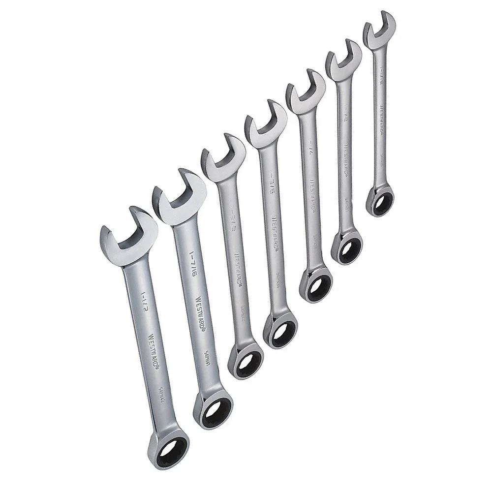 WESTWARD 54DG23 Combination Wrench Set, Alloy Steel, Chrome, 7 Tools, Standard, Pouch