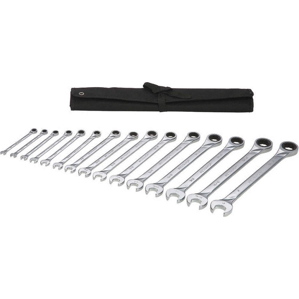 WESTWARD 54DG26 Combination Wrench Set, Alloy Steel, 15 Tools, 1/4-1 Inch Head Size