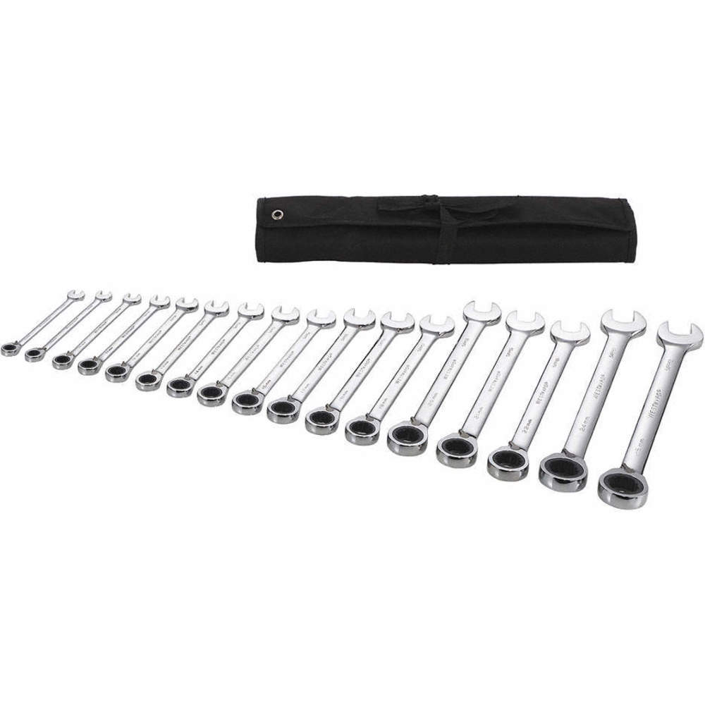 WESTWARD 54DG33 Ratcheting Combination Wrench Set, 12 Points, 17 Pieces