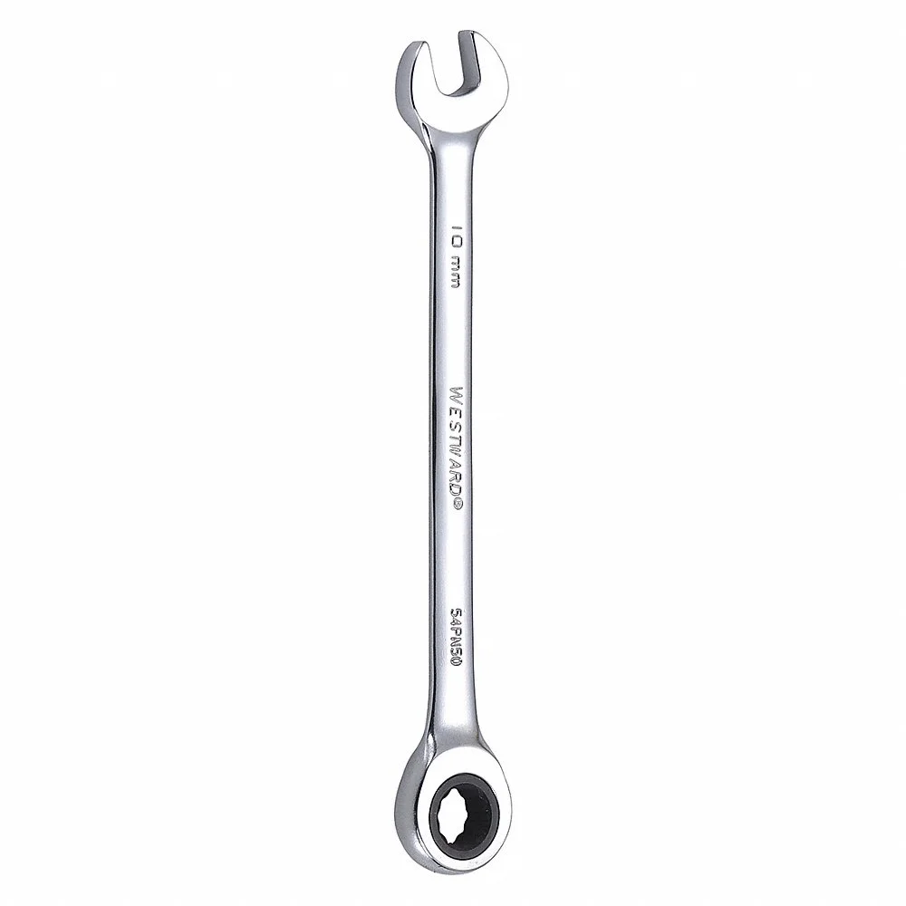 WESTWARD 54PN50 Combination Wrench, Alloy Steel, Chrome, 10 mm Head Size, 6 1/8 Inch OAL, Std