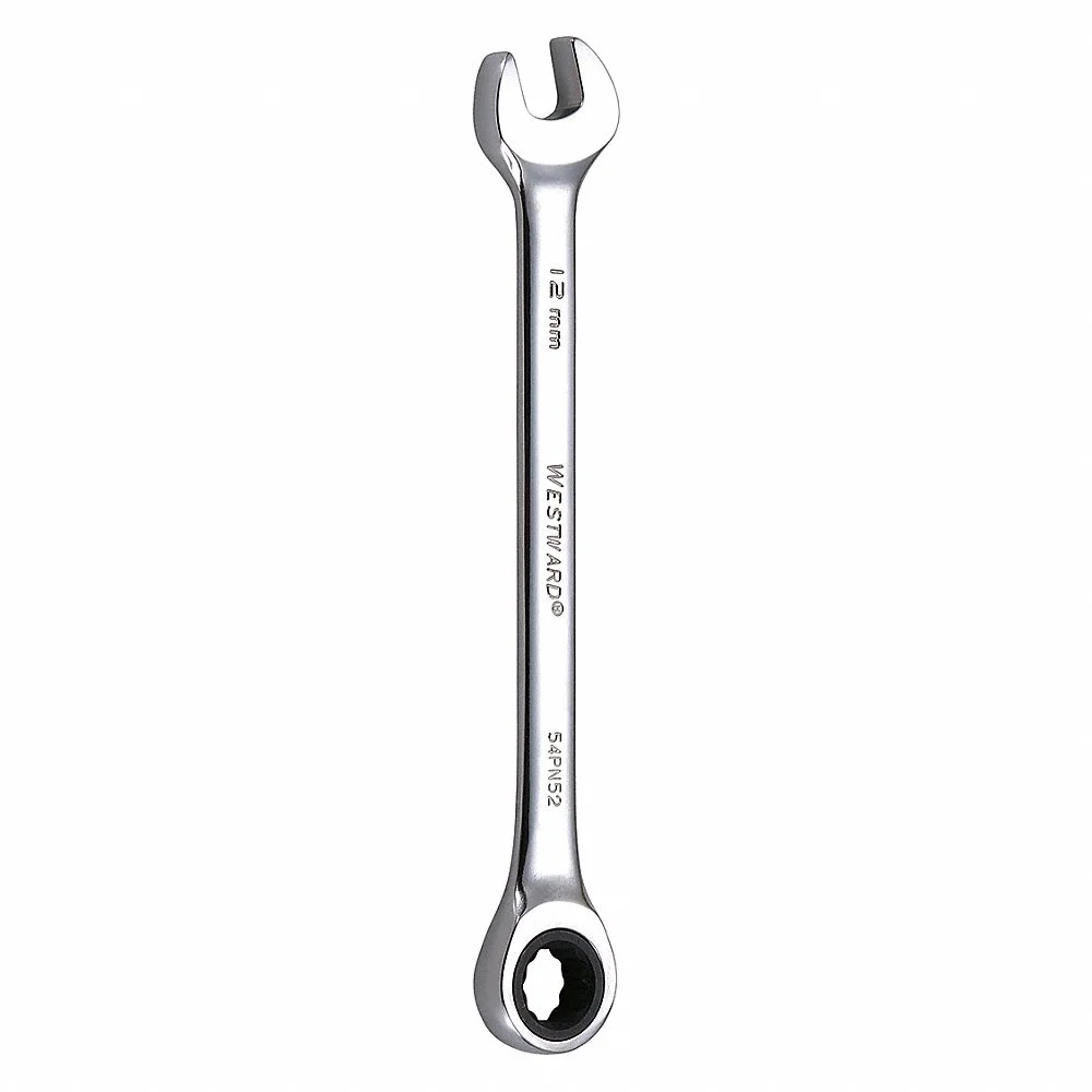 WESTWARD 54PN52 Ratcheting Combination Wrench, 12 mm Size, Metric, Number of Points 12