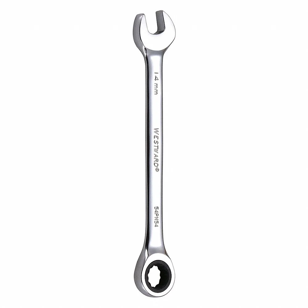 WESTWARD 54PN54 Ratcheting Combination Wrench, Metric, 14 mm, Number of Points 12