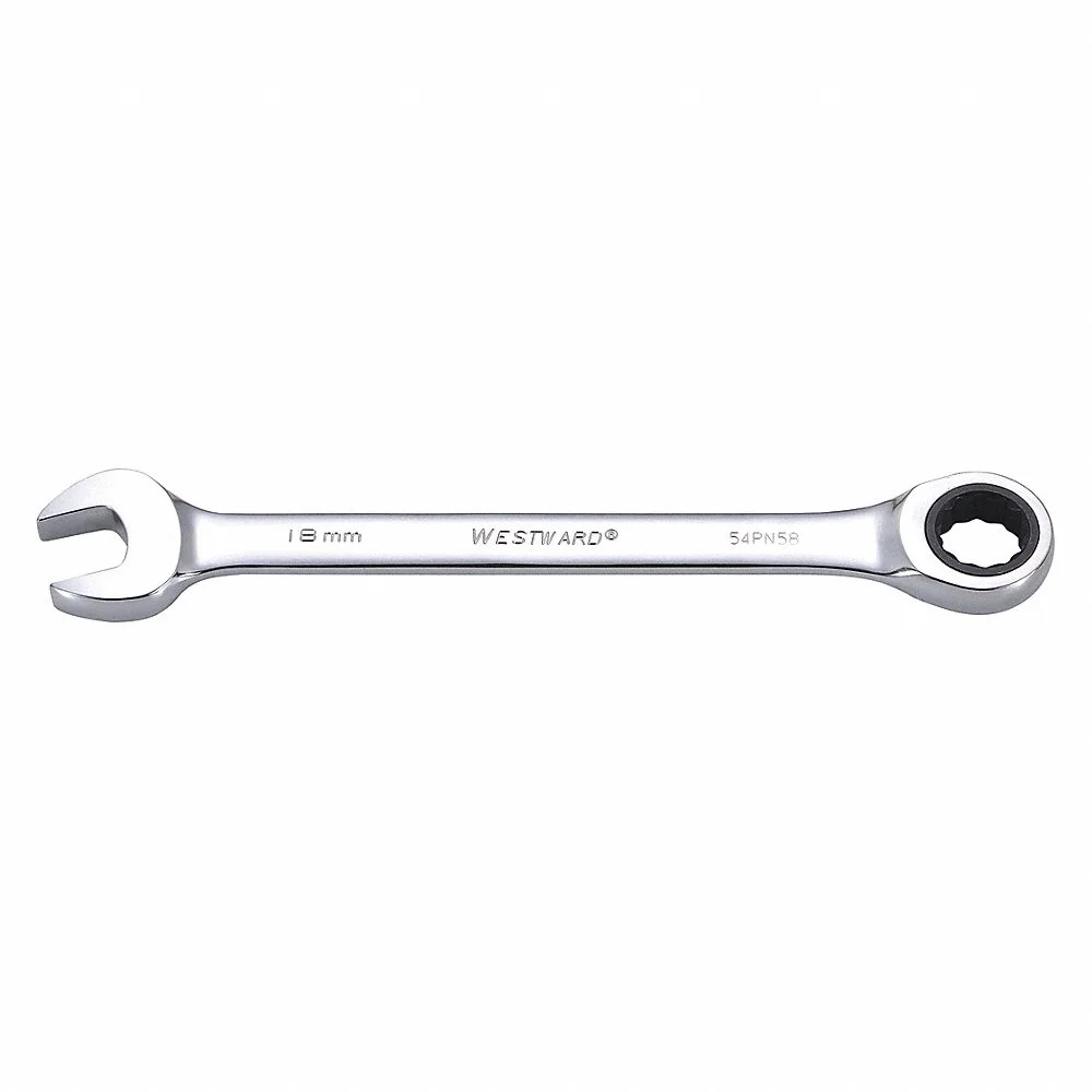 WESTWARD 54PN58 Combination Wrench, Alloy Steel, 18 mm Head Size, 9 1/4 Inch Overall Length, Rounded