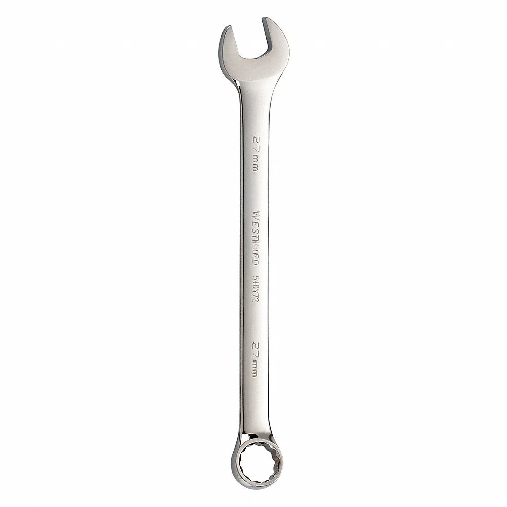 WESTWARD 54RY72 Combination Wrench, Alloy Steel, 27 mm Head Size, 14 Inch Overall Length, Offset