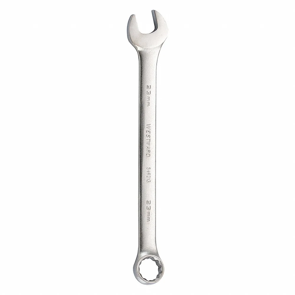 WESTWARD 54RZ13 Combination Wrench, Alloy Steel, Satin, 23 mm Head Size, 11 7/8 Inch Length, Offset