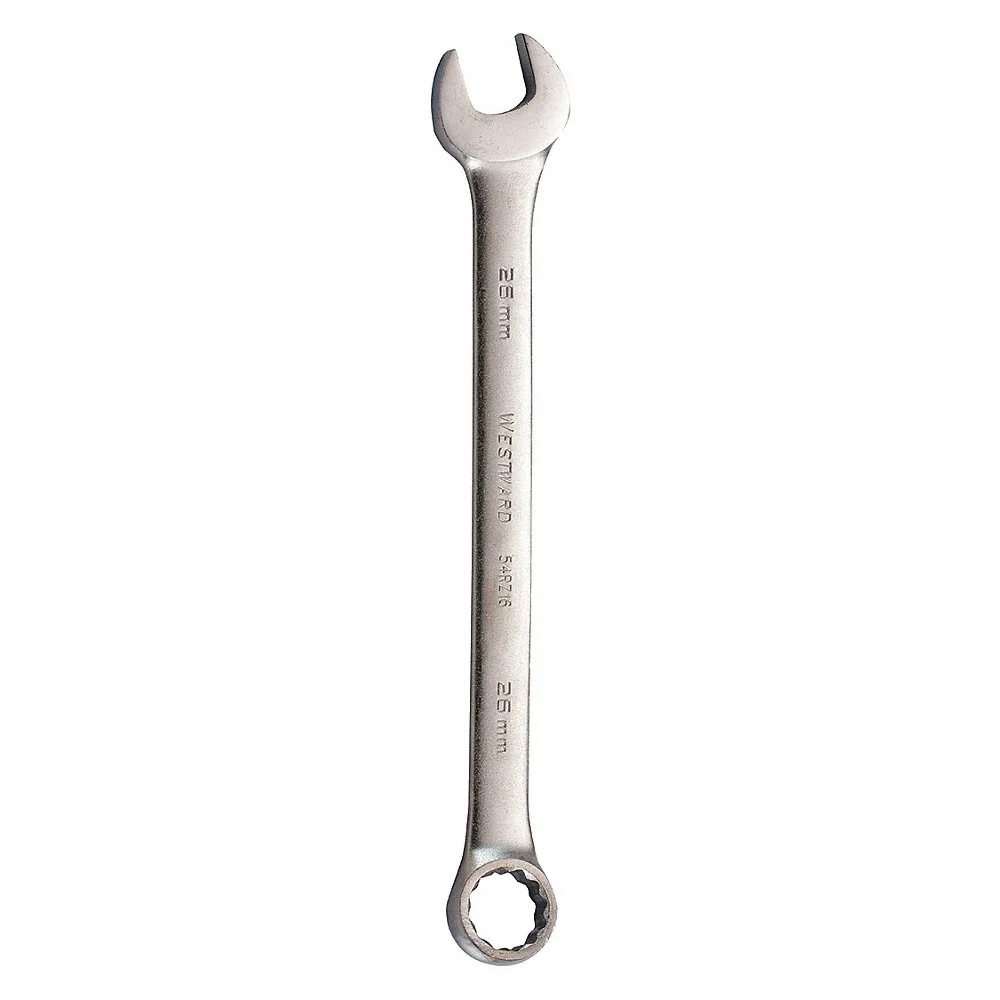 WESTWARD 54RZ16 Combination Wrench, Alloy Steel, Satin, 26 mm Head Size, 13 5/8 Inch Length, Offset